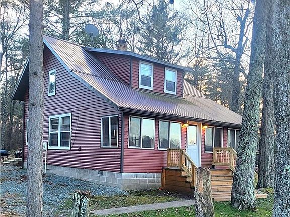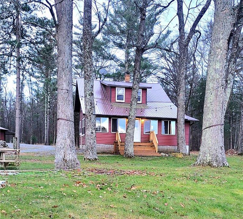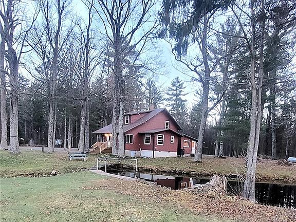 An exquisite opportunity to own a waterfront residence, situated on 2.14 acres along the gorgeous banks of Black River & offers full, direct access to Lake Arbutus, a full-recreation lake w/a depth of 50 feet, nestled on a quiet road. This home has undergone extensive updates & remodeling, ensuring modern comfort. Key enhancements include a new roof, siding, HVAC system, & plumbing & inside, a fully modernized kitchen,w/ custom hickory cabinets, breakfast bar & a spacious front family room, main floor laundry, open dining area, sitting nook overlooking the water & pond, French doors from living room opening into a four-season room where you will enjoy breathtaking, picturesque views of the sparkling water & a tranquil trout pond streaming directly into the lake w/a viewing deck. An inviting open stairwell leads to upper landing offering a versatile sitting area or extra sleeping nook & 3 nice sized bedrooms and 1/2 bath to relax & unwind. The exterior features a 2-car garage w/ lean-tos on each side for additional storage. A huge circular driveway, adorned w/ beautiful boulders & mature trees, guides you to a peaceful setting. You'll find a charming firepit area, ideal for evenings under the stars, while overlooking the serene lake. This area is a paradise for nature lovers & water adventurers, offering an abundance of hiking, ATV trails & water activities & the lake's only Tiki bar, & a pub & coffee shop across the water, easily accessible by a short boat ride from your shoreline. Property is currently operating as a VRBO, w/repeat customer base. An excellent investment opportunity! A personal vacation getaway, leveraging income profits or a private, year-round Lakeside Oasis, it offers unparalleled flexibility. A truly unique opportunity to own a piece of Wisconsin's natural beauty, combining luxurious living w/ lucrative potential. Option to purchase MLS #1597245 adjacent lot w/full util in place & MLS #1597252 (lot w/electric). Call for a private Tour Today
