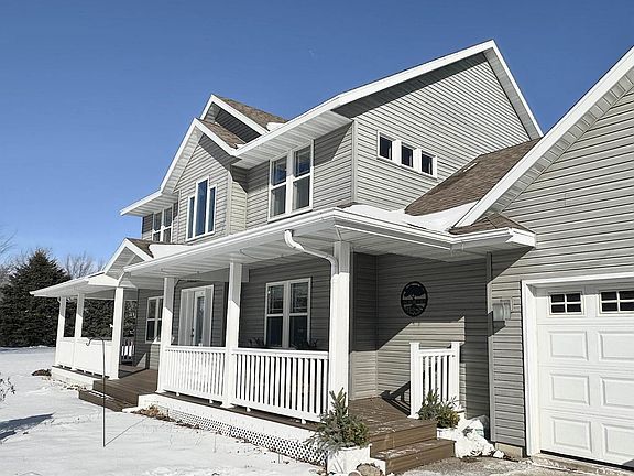Gorgeous 4-bedroom 3.5-bath home showcasing brilliance in both design and function. You'll be welcomed by soaring ceilings that create an open, light-filled first impression. The LR boasts a cozy wood-burning fireplace, adding warmth and character, while the kitchen is the true centerpiece of the home with a huge island ideal for gathering and entertaining. The primary suite offers a private retreat featuring a walk-in closet, full bath, and gas fireplace. Enjoy the convenience of upper-level laundry. The finished basement completes the home with a theater room, recreation area, and dedicated gaming stations providing plenty of space for friends and family. The 2 car attached garage and 30x40 outbuilding are perfect for storage, hobbies, & lake equipment. All of this is set on 5 acres with 180 ft of waterfront w/ peaceful lake views making this home truly exceptional. Updates include a new furnace (2025) main-floor flooring, primary bathroom, H2O Heater, trex decking