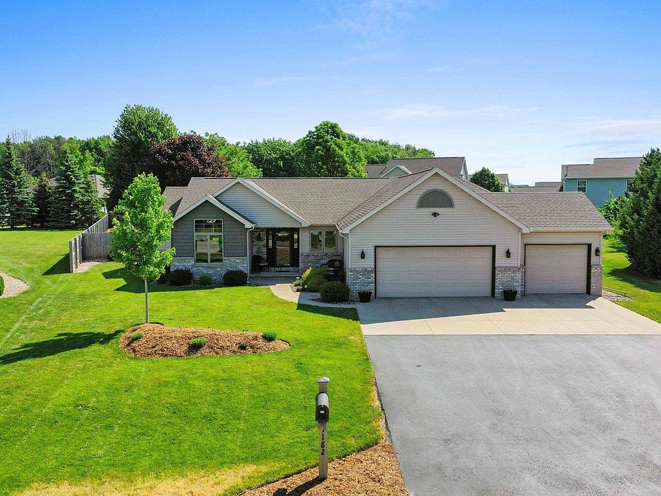 Beautifully updated ranch home set on a large, fenced in .43 acre lot within walking distance to Janet Berry Elem. School. 4 car heated gar. (3rd stall is tandem: 50 ft deep) w/epoxy floor. 1st flr. laundry w/half bath. Split bedroom floor plan. Private primary suite with a walk in closet & bath w/dual sinks. Spacious living room w/vaulted ceiling & gas f/pl. Gorgeous kitchen w/appliance pkg., triple panel patio door off dining area leads to a large deck. Partially finished lower level offers a family room/flex area w/pellet stove & half bath. Lower level f/room offers a dishwasher & refrigerator and beautiful cabinet/bar area w/granite counter tops. New central air unit(May 2023). Offers to be in by the end of the day on 6/6/23 and will be reviewed by the seller on 6/7/23.