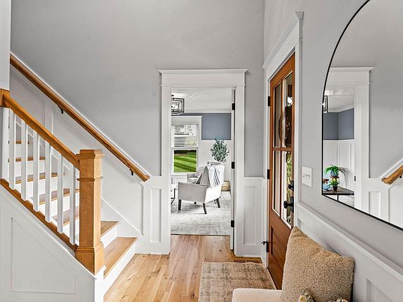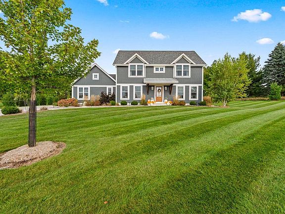 Introducing this gorgeous 2019 Miller Marriott custom-built home set in a quiet cul-de-sac in Merton. The 4BR/4BA colonial blends contemporary style with timeless elegance. The inviting main living spaces are adorned with rich oak floors throughout. Retreat to the great room with gas fireplace that opens into the custom kitchen with beautifully crafted cabinets, a center island, quartz counters & pantry. There is a bedroom, a full bath, flex room, mudroom and laundry completing the main floor. Upstairs, a beautiful primary w/ ensuite, 2 more bedrooms, and a full bath. The finished LL has everything you need to entertain, and outside discover a large patio overlooking a serene, private tree-lined lot. Nearby you'll enjoy the Lake Keesus boat launch, Ice Age Trail & Peck & Bushel Fruit Co.