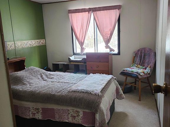 Two bedroom, one bath single wide mobile home on a 100x200 wooded lot in Curtis .The home sits between Big Manistique Lake and South Manistique with snowmobile access to both. Privacy on all sides with abundant wildlife yet walkable to post office and stores. Step down living room with large bay window and electric fireplace. There is an open kitchen/dining area with island and newer appliances. The main bedroom offers double closets for ample storage. The bathroom features a garden tub, step-in shower, double sinks and a full size washer/ dryer (included) There is also a nice size entryway and deck. There is a wide blacktop driveway leading to the two car garage w/ electric door opener. The garage is insulated, has a pellet stove w/ stovepipe attachments and 6 bags of pellets. The crawl space contains an insulated pressure tank with heat tape and thermostat. The home has had some upgrades within the past 7 years including a metal roof, furnace and flooring. The home comes fully furnished including the beds and A/C unit. There is a list of what is not included under documents.