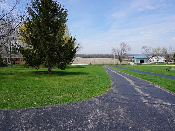 Rural ranch home on 2 acres. Great Room with cathedral ceilings and beautiful wood-burning, brick fireplace. Charming kitchen includes hickory cabinets with breakfast bar. 3 car garage plus detached 2 car garage and a shed. Property backs up to Glacial River Trail. Charter cable and internet ready.
