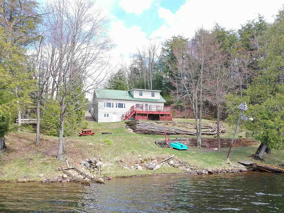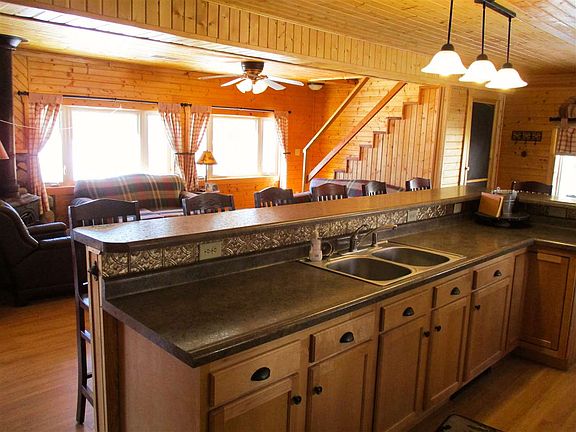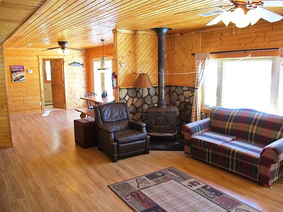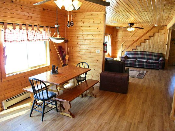 Low maintenance 5 bedroom, 1 full bath lake home or cabin with +/-100 feet of frontage on beautiful Big Spirit Lake. Kitchen with large breakfast bar, pressed tin backsplash and tongue and groove finished walls and ceiling. Living room with wood burning fireplace and lake views. Dining room with door to deck overlooking the lake. Updated full bathroom. Main floor laundry and 2 main floor bedrooms. Upper level bonus room and 3 bedrooms. Walkout basement plumbed for an additional bathroom. Big Spirit Lake is 213 acres in size with access to 126 acre Little Spirit Lake. You can expect to catch Walleye, Northern Pike, Muskie, Largemouth Bass, Crappies and Bluegills on Little Spirit and Big Spirit Lakes. The property is also located close to Timms Hill and numerous hiking, ski, snowshoe, atv and snowmobile trails. The refrigerator, stove, washer, dryer, microwave and window coverings are included in the sale price.