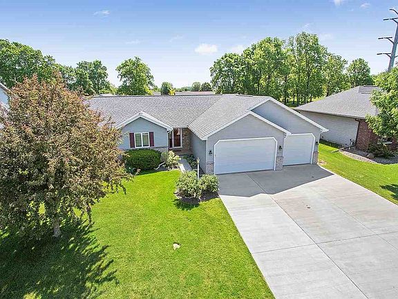 Beautifully maintained 3 bd, 2 ba home w/ 3 car attached garage. You will be greeted by vaulted ceilings and wood floors in the entry & living room. The kitchen has solid surface countertops & tiled backsplash. From the patio door in the dining area, you can see the nice landscaped yard and designer paver patio. First floor laundry is located near the back door and adjacent to the kitchen. The master bedroom is nice-sized and offers a master bathroom. Two more bedrooms and full bathroom complete the main floor. The lower levels is primarily unfinished with just a den/office finished.