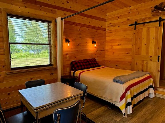 100' of hard sand beach on Big Manistique lake's east shore for sunsets. Enjoy this Stick built 40 x 36' garage with furnished insulated living quarters! Built approx 2015 with a one open room living quarters. Open kitchen with electric range top, microwave, & fridge with nice hickory cabinets, wood counter and all furnished, dock & pontoon lift. Vinyl plank flooring with a raised hearth with wood burner for taking off the chill. There is also a nice 10 x 7 Bath with shower with barn door and utility area. Knotty pine throughout & windows facing the lakeside. Then for storage the other side is 25.2 x 34' insulated walls and cement floor with drain & 200 amp service. New at build well & septic for the perfect retreat on private rd. with land across it has conservation easement to CR 135 SHOWINGS AND OFFERS WILL BE IN BY 9-3-TUESDAY AND SELLERS WILL RESPOND BY WED 9-4-24 AT 4:00PM The back acreage is a conservation easement from logging trail to road to keep privacy on this dead end quiet road. The lot has been cleared partly to the lake with a pristine beach. You can boat to 2 restaurants on this 10,000 ac all sports lake in Curtis MI only a hour from the Bridge!