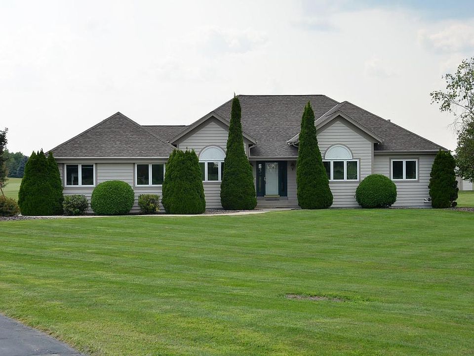 Beautiful exposed ranch on 5 acres features great room with Cathedral ceilings & GFP flanked by a wall of windows. Kitchen with maple cabinets & quartz countertops, stainless appliances, walk-in pantry, breakfast bar, dinette, maple HWFs, patio doors to concrete patio & backyard w/Playset & shed. Master suite with tray ceiling, WIC, bath with dual sinks, jetted tub. 2 bedrooms on main plus laundry room & den/office with French doors. Finished lower features family room w/ GFP, spacious game area w/ wet bar, 4th bedroom with egress window + bonus/exercise room w/ closet & 3rd full bath. Plenty of storage space. 3.5 car heated garage. All newer windows come w/ Warranty that transfers to the new owner! Build your own outbuilding, 2nd GA or pole barn. Located on the East Troy-Mukwonago border.