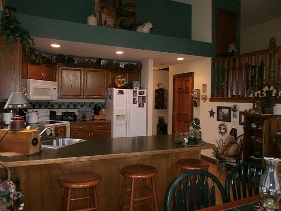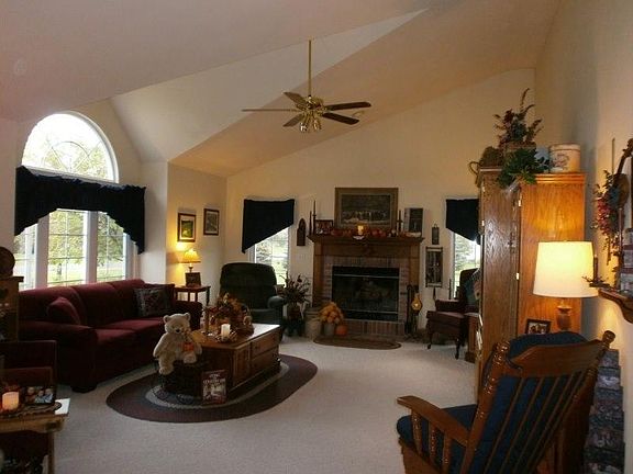 This charming & inviting home sits on a cul-de-sac & beautifully maintained 1 acre lot. Inside the charm & character is apparent with a spacious great room with vaulted ceiling & brick fireplace. Open concept kitchen has loads of cabinets, pantry, breakfast bar, vaulted ceiling, hickory floor & patio door to deck, pretty yard & sunset views. Custom master & private bath are sure to please. Main laundry, den/office/loft, rec room and work shop.