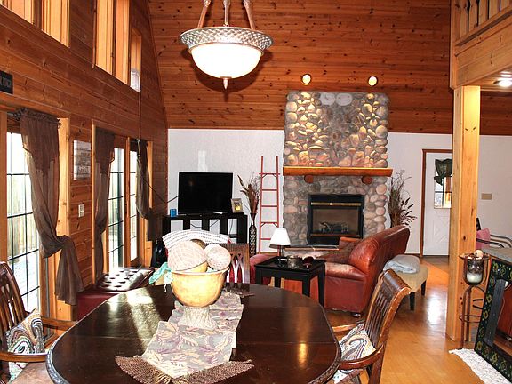 Escape to your own piece of heaven with 19 acres of pristine land and a charming 2-story, 1950 sq. ft. home. This beautifully designed retreat features 2 bedrooms, 2 bathrooms, and a spacious loft overlooking the dining, family areas and sunroom. The open-concept floor plan exudes a cabin feel with a striking cultured stone fireplace and breathtaking knotty pine ceilings with a dramatic 12/12 pitch. The unfinished basement with 9-foot walls is ready for expansion, with roughed-in plumbing for an additional bathroom and extra living space. Outdoor enthusiasts will love the snowmobile and UTV trails right on the property, offering year-round adventure. Perfect for those who seek privacy, nature, and the ultimate escape, this home combines rustic charm with room to grow. Call today to schedule an appointment.