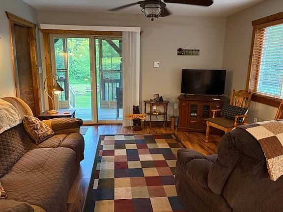 AWAY FROM IT ALL! This newer stick built home, constructed in 2009 on 15 primarily wooded acres, offers 6" interior walls, an oversized detached garage, a firepit, a wood auxiliary heating system plus much more. The home features a great room design with 44+/-' of hickory cabinets which opens into the living area with a patio door leading to a screen room which spans the front of the home (no more pesty mosquitoes). There are two bedrooms, the primary offers two closets. The bath has a shower stall plus there is a separate laundry/utility room. The crawl space has a membrane professionally installed with a sump pump and dehumidifier. Come and see this convenient single story home!