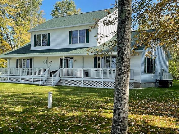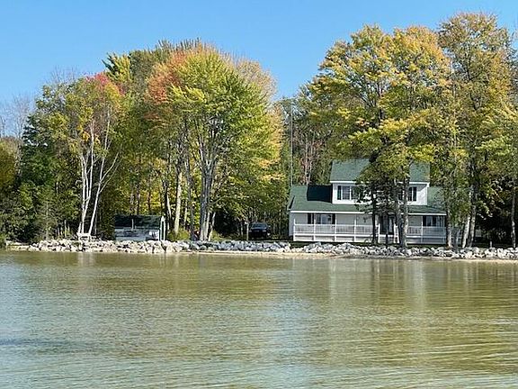 Sunsets, sand beach & beautiful setting with this Custom built Modular home on 160' of hard sand bottom swimming beach and 5 private acres only minutes from Curtis!! Your own Private drive off CR M135 that meanders down the woods, to their piece of heaven on Big Manistique lakes east shore! Step in to the vaulted grand foyer overlooking the open staircase & den on the upper level for a spacious bright feel. Main level offers a large living/diningroom that overlooks the lake and covered porch to enjoy a different sunset every evening. New flooring, paint & nice kitchen for entertaining with pull out pantry, island, corian countertops, and all appliances included with sale. The lakeside primary bedroom is 21'x13.6 with its own private bath, 2 walk in closets, & a custom closet organizer! Main floor laundry & a 1/2 bath just off the newly heated garage, with custom metal storage/workbench & garage door just installed & cement approach the men will love to hang out in. Then the 2nd floor is a fabulous space with an open den the kids will love to play in, with two nice size lakeside bedrooms and full bath. So many extras the sellers have all done for you since they purchased, including a full house on demand generator, 160' of limestone shoreline, that protects their beautiful sand beach, new roof, with additional insulation, storage building, purchased additional adjoining 60' lot, for privacy, new lift system septic, new back deck, to just name a few. Propane forced air heating with central air and truly one of the nicest spots with a flat access to the lake you will find!! There is a 28x30 storage building by road & 12x18 shed as well. The sellers retired and are ready to travel, so this opportunity can be yours!! By appointment to pre qualified buyers please. (sellers have newer Fiberglass dock, new 2022 - 21' pontoon with 115hsp yamaha motor with bunk new trailer, & most furnishing all can be negotiated with this sale for a turnkey purchase items sold on a separate sale)