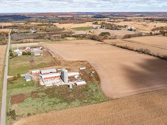 Discover the possibilities with this 24.05-acre farm, ready for a new owner to bring it back to life! The property features a 3-bedroom ranch-style home with a full basement and an attached 2-car garage. The impressive 40x245 dairy barn includes 16 stalls, a 36x140 lean-to with convenient drive-through feeding and mangers, an 8-stall flat barn parlor, and a 2,000-gallon bulk tank. Additional outbuildings provide plenty of space and versatility, including 50x54 and 30x54 heifer barns, a 54x99 machine shed, and a 30x50 shop. Four silos and a liquid manure pit add to the farm’s functionality. With approximately 20 tillable acres, this property is great for anyone looking to expand their operation or start a new agricultural venture.