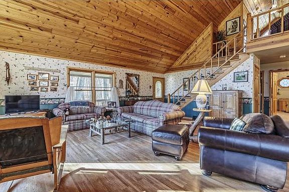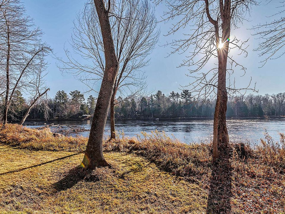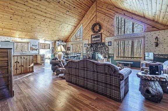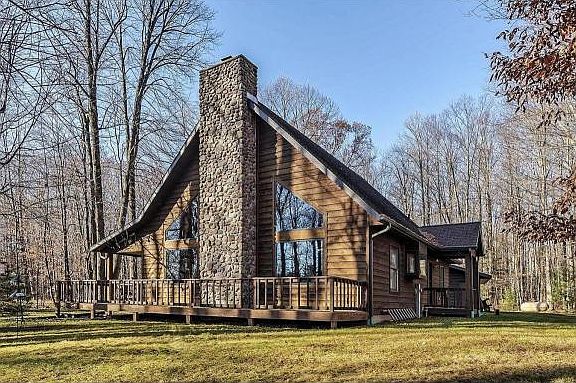 MOVE UP TO THIS HOME - WE'LL BUY YOURS* FIND OUT THE INNER WORKINGS OF THIS PROGRAM: TODDWIESESOLDGUARANTEE.COM 184' of the Menomonee River! 2.73 private acres. Open concept chalet w/covered porch, enclosed porch & large deck offering wooded & water views. Great Rm features cathedral knotty pine tongue & groove ceiling, cozy fieldstone fireplace w/wall of windows. Open applianced kitchen w/hickory cabinets, quartz countertop, walk-in pantry & dinette. Main full bath w/whirlpool tub. Upper loft, det garage. (*Terms and Conditions Apply)