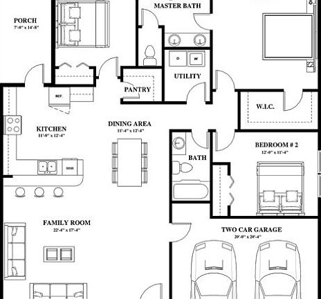 Two-car garageOpen concept floor planSpacious pantryWalk-in closetCabinet spaceGarden tubWalk-in laundry room