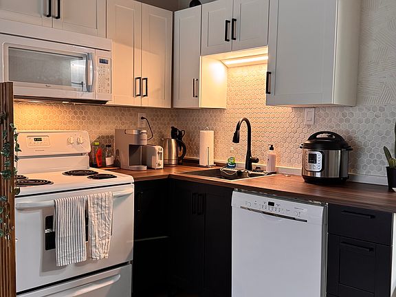 Bosch dishwasherFully furnished modern condoNew towelsRenovated kitchenNew european cabinetsQuartz double-sink vanity