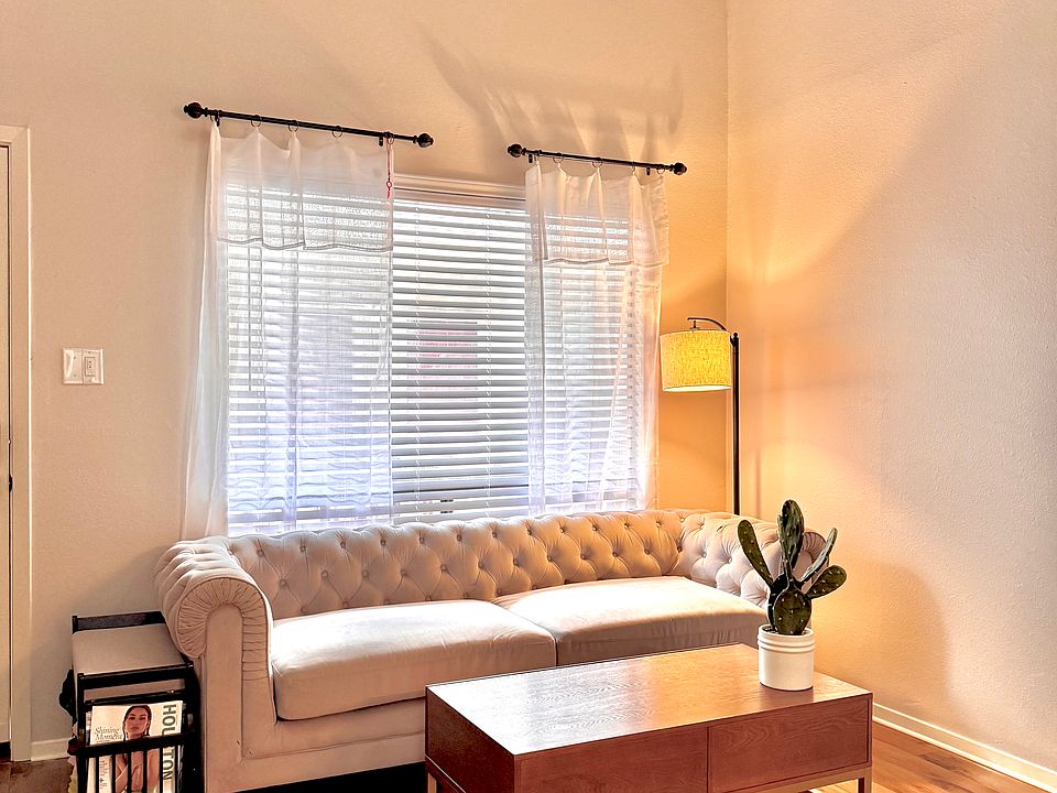 * Two queen beds w/ new mattresses & linens, blackout curtains, desk, sofa, TV stand, bookshelf, floor lamps, fans, balcony furniture + all you need!