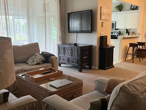 Emerald Bay is a hidden gem off of Vanderbilt Dr. It is a gated, quiet community. This two bed two full bath condo is completely furnished with updated decor and amenities including tile and lvt flooring. A master suite with a king size adjustable bed, double windows and a slider with access to the lanai. The second bedroom has a full/queen bed. Both bedrooms are equipped with cable television and streaming devices. Other amenities include an in unit washer, dryer, gas grill, beach chairs, umbrella and cooler. This tastefully decorated unit is steps to the pool, hot tub and clubhouse. A second clubhouse and pool are within walking distance. In addition to all this, you have 3 beaches within two miles. The ride is suitable for biking. Golfing is in close proximity. A All utilities are included in this rental, however extra fee for electric vehicles.