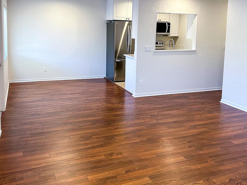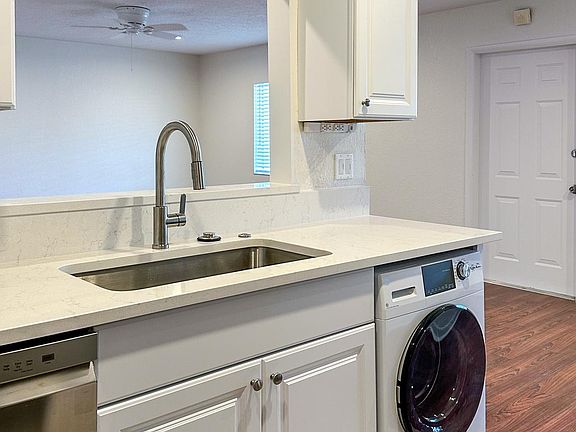 This unit has been completely remodeled in 2023 with: new stainless-steel appliances (Fridge, Dishwasher, Stove, Disposal, Washer/Dryer), quartz counter tops, new kitchen cabinets, recessed LED lighting, new ceiling fans, new bathroom vanities, sinks and toilets. Combination of wood and tile flooring throughout.