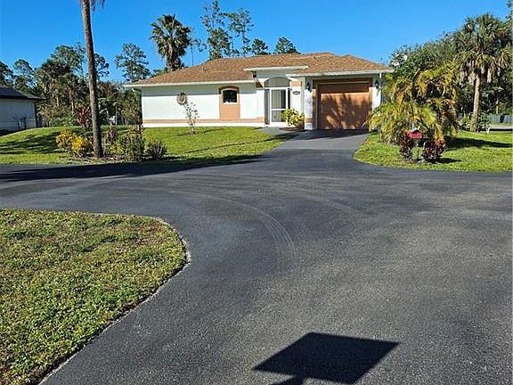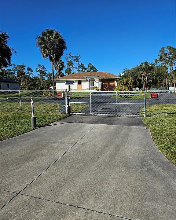 LOCATION! LOCATION! LOCATION! Gorgeous newly remodeled 3 bedroom, 2 bath, upscale finishes, tile through-out, spacious modern kitchen with White Shaker Cabinets, Black Galaxy Granite countertops. Master bedroom and bath feature custom walk-in closet. Laundry room is in residence, with custom cabinets. Large spaciuos lanai along rear of home. Solar panel gate door opener with added keypad, completely fenced property, the whole 2.27 acres, Tiki Hut for relaxing afternoons, trash cabana, 2 seperate industrial metal sheds, partition fencing. Asphalt parking for multiple vehichles and driveway. Reverse Osmosis for entire home inside and out. Very well maintained property. Plenty of space for adding a pool or your horses. NO HOA, no Deed restrictions! One block from Golden Gate Blvd., close to schools, parks, shopping, I-75 and SR 29. You don't want to let this one get away, it is move-in ready with no repairs or fixing up to do. This one is calling you!