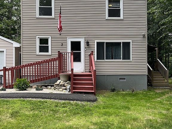 Nestled in this nice Sebago lake side community our 5bd 2bath home is a perfect rental retreat. Featuring a 1st floor Master with 4 bedrooms above. Two full baths with washer and dryer hook up in unit. The property is on a 1/2 acre with nice lawn, horseshoe pit, outdoor fire pit, deck and shed. Walk to the lake with private association, boat launch, pavilion, beach and water access. Perfect for all season and close to the Naples Causeway and all the amenities!