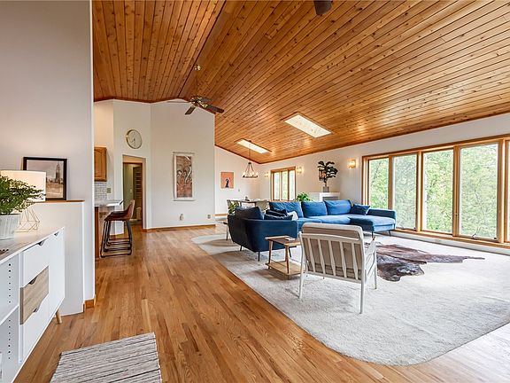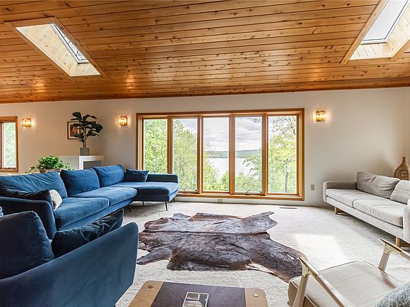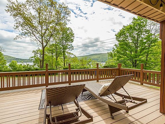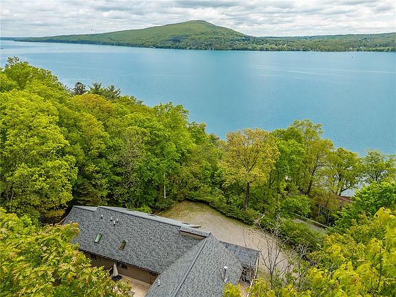 Nestled in the woods just minutes from Canandaigua Lake, this beautiful 3,400+ sqft home offers luxury, convenience, and lake views. Exceptional views in every direction, whether enjoying the sunlit three-seasons room to the spacious deck or front patio. Entertaining has never been more convenient with the exceptional layout, ample parking, and proximity to countless Finger Lakes destination spots. This home is perfect, whether you're searching for a full-time residence, vacation getaway, or income-generating investment, having previously operated as a successful Airbnb. Recent upgrades include a new roof and skylights (2021), a new HVAC system (2022), and the addition of a second well (2022).