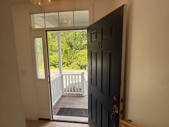 A few steps down from the front foyer is a finished lower level, a door entry to the garage and another door to a storage area.