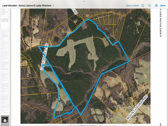 2 Parcels Vacant Land Halifax County. Timber valuation $175,000 on file supports tree farming. List price is below appraised value. Fantastic opportunities for hunting and recreation. Long road frontage on several county roads add to the value and flexibility. Centrally located to state capitals of Richmond, VA & Raleigh, NC both with 1.5-2 hour drive. Staunton River State Park, Virginia International Raceway & Caesars Virginia all within 30 minutes. A rural Virginia farm offered for the first time in multiple generations.