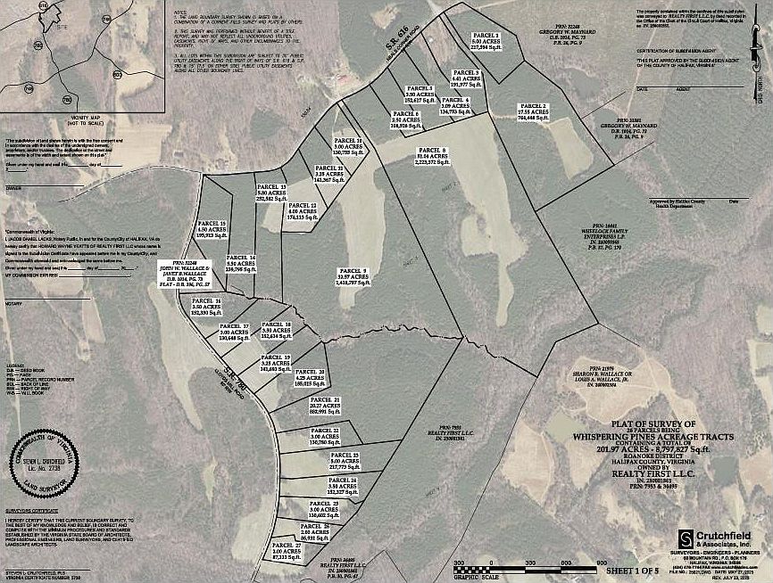 Discover peace and potential with this 5.8-acre parcel in Whispering Pines Acreage Tracts of Clover, VA. A little over half an acre is open, with the remainder beautifully wooded—ideal for a private homesite, mini-farm, or weekend retreat. A proposed build site is flagged on a new plat, with preliminary soil work completed and a recent survey clearly marking all boundaries. Dominion Energy is nearby, and Empower fiber optics provides high-speed internet, bringing modern convenience to a peaceful rural setting. Owner financing is available to make land ownership more attainable. With an acceptable offer, the seller is including a Virginia State Park pass valid for one year. Several adjoining parcels are also available, ranging from 2.5 to over 48 acres, offering opportunities to expand your space, increase privacy, or invest in multiple tracts. Just 22 miles from Staunton River State Park, this scenic property offers natural beauty, privacy, and future potential in southern Virginia.