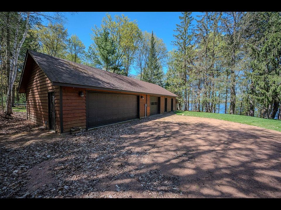 Rare opportunity to build your Northwoods retreat on 3.0 acres and 100' of sandy frontage, situated on the south side of the 500+ acre, crystal clear, full-rec Harris Lake. Located only ~15 minutes from Manitowish Waters and even closer to WinMan Trails. Property has an existing gravel driveway and three-car garage with electricity and a wood-burning furnace for storing your boat while you design your dream home, or building materials while you build. The lot is lightly wooded with a slope to the lake that is ideal for a walkout style home. Ready to be enjoyed for generations to come.