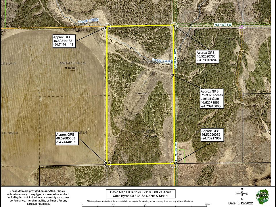 Great access on a partial public maintained road, this 80 acre parcel awaits your next hunting/recreation adventure! High ground with Red Pine, Jack Pine, Spruce/Fir and Aspen, with a water source of Tower Creek running through… all the ingredients for outstanding whitetail deer, bear, turkey, small game and waterfowl habitat. Parcel includes 3 permanent deer stands with prep areas for food plots. Nicely cut trails throughout the property. Historical Deer Permit Area 246 and also adjoins several hundred acres of public land to play on! Just north of Motley and a short drive to two wildlife management areas (Dry Sand Lake & Farnham Lake), this tract is just 3 miles from paved Hwy 64.