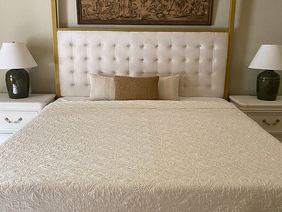 Brand-new king-size beds in two of bedrooms and a queen bed in third bonus room above garage. Large screened-in porch overlooking farm fields and forest.