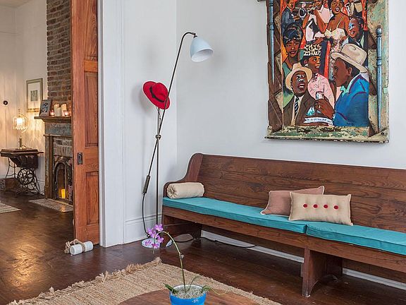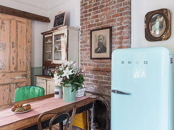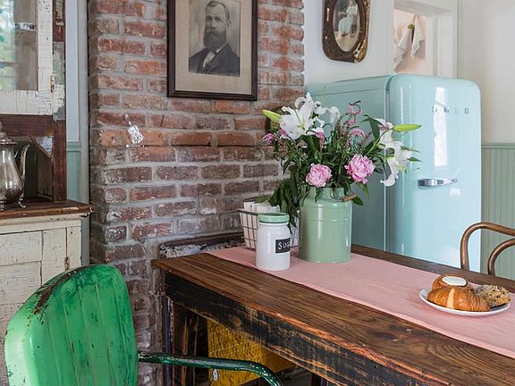 Sliding pocket doorsPrivate washer and dryerExposed brick chimneysReclaimed cypress barn doorsClaw foot bathtub