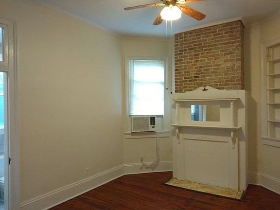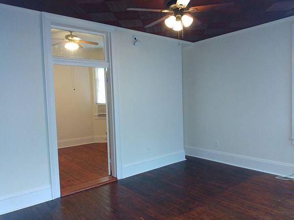 This unit has one off-street parking spot, and then a side yard that leads up to your front deck. Inside, there is one front/living room, then a large bedroom with decorative mantel and a nice tile bathroom off of the bedroom with a large shower/no tub. Then there is a normal kitchen with electric range and microwave, and a door to the large fenced backyard with grass. Backyard can come with a firepit and propane grill if desired. Hardwood floors in two rooms but not the kitchen. Ceiling fans in every room.