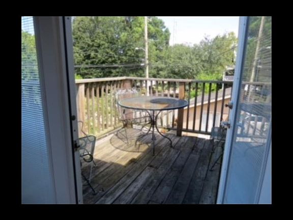 Small deckStainless appliancesFull height custom cabinetsTile bathOriginal hardwood floors