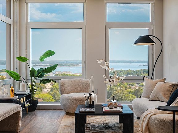 New Upscale Spectacular Newly Built Property with an Art Vibe and Incredible Views. Spacious sun-filled 2 bedroom 2 bath rental that features an upscale kitchen with white quartz countertops, natural oak cabinetry, stainless steel appliances, spacious closets, floor to ceiling windows, central air conditioning, washers and dryer in unit, bathroom with backlit lighting and much more. .State of the art Fitness center and Resident center with upscale features, game room, golf simulator. Private parking is available, friendly pets are considered.