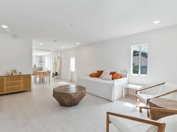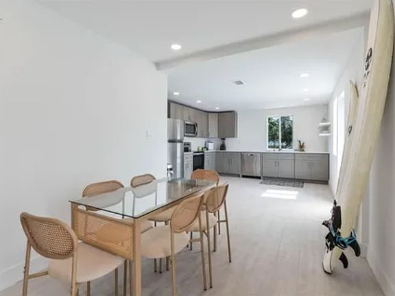 This crisp, light & bright coastal gem features an open-concept kitchen, dining, and living area perfect for gathering with friends and family after a day in the waves.