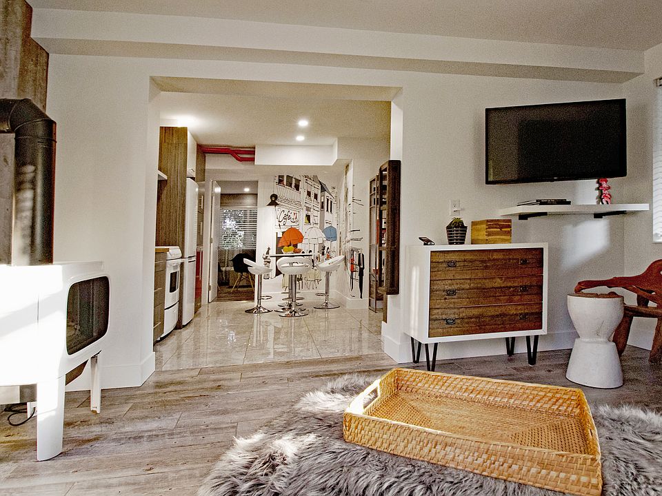 This spacious 850 sq ft ground-level suite offers a perfect blend of comfort and style: