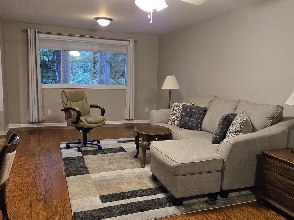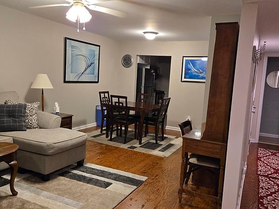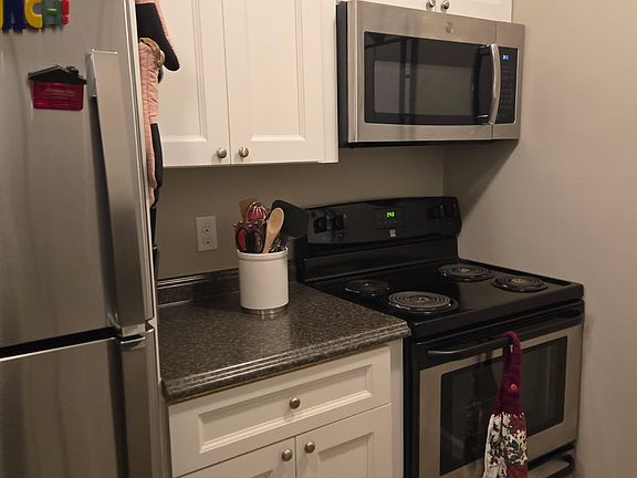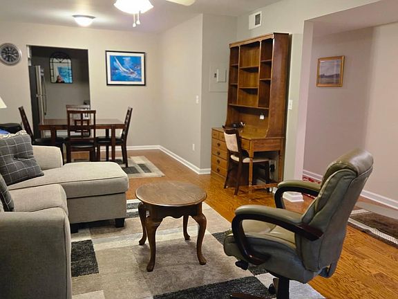 Large open dining room/living room combination. Central air conditioning, forced hot air heat, new refrigerator, vinyl laminate floors, new shower doors, new fixtures and tub surround, new window in second bedroom, custom ClosetMaid wire systems, new bedding, on site postal box. Excellent commuter location with shopping nearby. LANDLORD PAYS: HOA fees, which includes trash removal and common area maintenance, water/sewer. TENANT PAYS: electric, phone, cable, Internet (FIOS or Spectrum). 1 parking spot reserved for the apartment. Visitors' spots are also available.