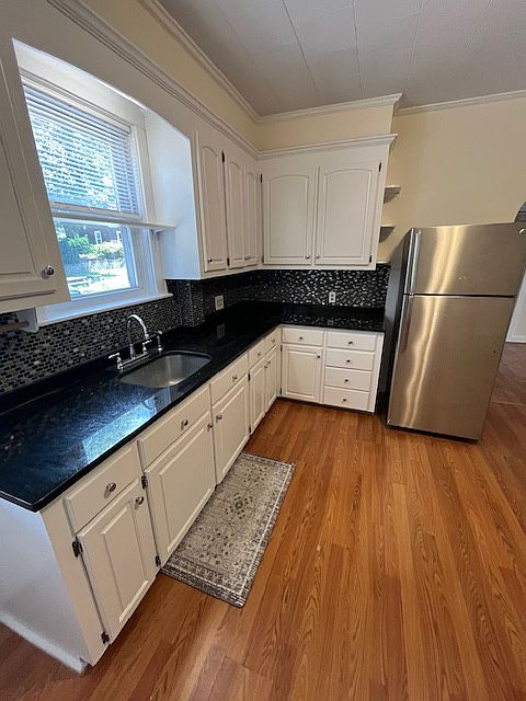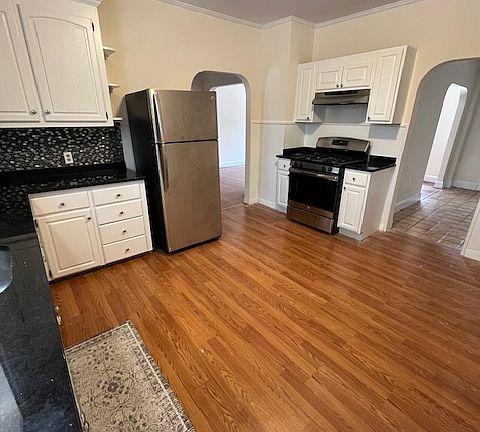 Hardwood floors, big living room, dining room, large kitchen with stainless steel appliances, three good sized bedrooms.