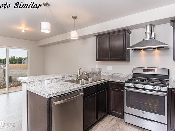 Great location minutes from Tikahtnu & JBER. Open House Every Sat/Sun 1-4. Hultquist Homes Open 2 story floor plan. Living, dining, kitchen and powder room on main living level. Laminate flooring throughout first floor. Kitchen has eating bar, canopy hood and 5 burner gas stove. 3 beds + loft up. Master bedroom with private bathroom featuring dual vanity, tub and a large walk in closet. 2 year interior warranty. Estimated date of completion 4/15/16