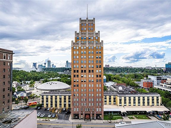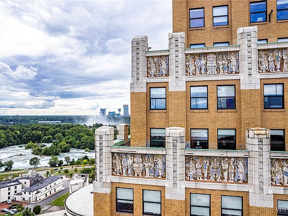 Rare opportunity to own a piece of Niagara Falls history at The Giacomo! This spacious 1-bedroom, 1-bath condo offers 1,066 sq ft and is ready for your finishing touches. Formerly an apartment, this unit is a blank canvas, needing a little fresh paint, new blinds, and stylish new decor—perfect for personal use or as an income-generating investment. Upon entry, to your right is a large master bedroom with direct access to the full bathroom, which features both a bathtub and shower. The bathroom boasts a second door off the hallway for convenience. Down the hall, the open living area awaits—designed for relaxing or entertaining guests. The kitchen is ideal for hosting, while the living room is perfect for cozy evenings, all with breathtaking, unobstructed views of Niagara Falls from your windows. The Giacomo is an Art Deco architectural masterpiece in the heart of downtown. You'll love the blend of historic character and amenities, including secure entry, parking, fitness center, and observation areas—right in one of Niagara Falls’ tallest and most recognizable buildings. This unit offers tremendous potential: ideal as a new home, vacation retreat, or investment property, just a bit of TLC will truly make it shine. Schedule your private showing today and experience life at The Giacomo—where historic charm and unbeatable views await.