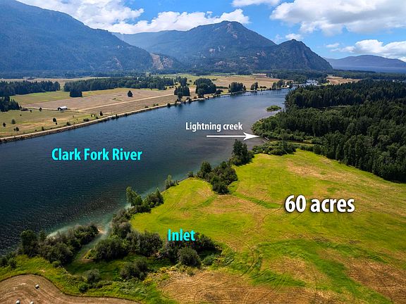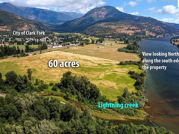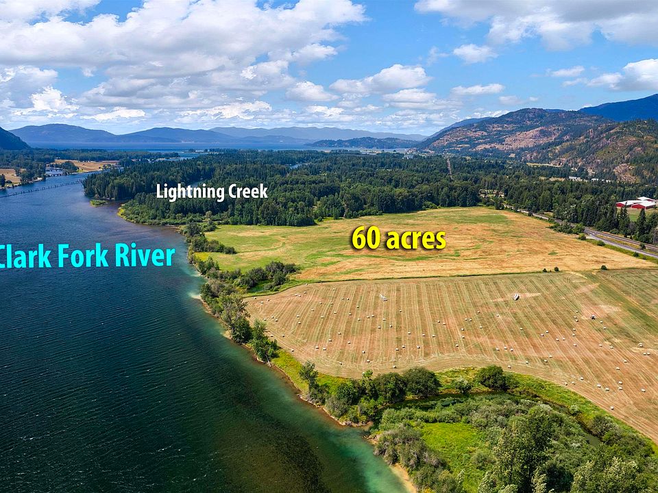 Discover this hidden gem with 60 acres on the shores of the Clark Fork River & Lightning Creek flowing through the west side of the property. A rarity to hit the market, this one-of-a-kind 60 acres offers 360-degree views of mountain ranges, sparkling water and bordering town. Bring your RV and boat and set up enjoy. Enjoy the fresh country air while exploring North Idaho, a haven for outdoor enthusiasts, with plenty of recreation opportunities on the water, land, and mountains. Endless opportunities for fishing, hiking, ATVing, bird watching, kayaking, and snowmobiling, you will never run out of things to do. The best part? No CCR's or HOA's. Please request an email to be sent to you regarding additional information FEMA (floodway), wetlands etc. The Clark Fork River, which leads into Lake Pend Oreille, is a water sportsman's paradise with plenty of fishing opportunities. Hunters and nature enthusiasts will appreciate the National Forest nearby. Terrific wells nearby (see attached). This property truly showcases the beauty of the area.