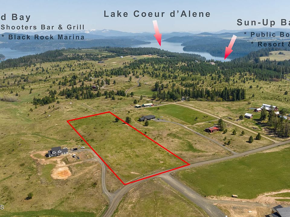 Beautiful 5-acre parcel located 15 minutes to Coeur d'Alene! Power on site, incredible surrounding wells, fully fenced with gate access, ideal topography, multiple internet options, county-maintained roads, elevated build site offering incredible forever views! Enjoy the lifestyle of living in the country yet being minutes to sought-after area amenities including The Black Rock Marina, Shooters Bar & Grill, SunUp Bay Resort & PUBLIC BOAT LAUNCH, top rated golf courses, the Coeur d'Alene Casino and quick access to the Spokane International Airport. Don't miss this opportunity to own a fantastic piece of North Idaho!