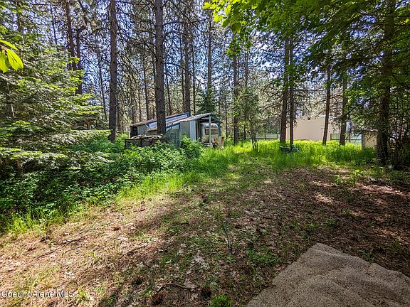Come and see this .21 acre wooded lot just minutes to town. The location is ideal, just a short drive to Bennett Bay, the Centennial Trail, Silver Beach Marina and all the great lake activities Coeur d'Alene has to offer. Electricity is at the property line and the land includes several outbuildings - storage shed, gazebo, and lean-to with additional storage room. Added bonus, included in sale at no additional charge is 1968 27' Countess Streamline Aluminum Travel Trailer project for you to make beautiful! No HOA or CC&RS.