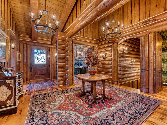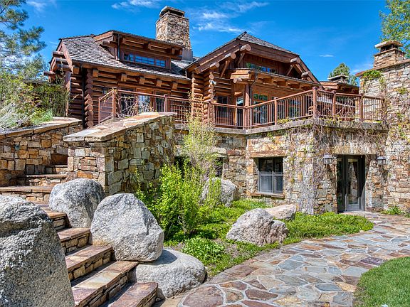 Located within the exclusive Stock Farm Club is Travelers Rest - A one of a kind lodge style log residence on 8.51+ private acres. The owners named this exquisite homestead after the famous journey of Lewis and Clark. The historic Travelers Rest, located in the Bitterroot Valley, was an important stop on the two-year adventure where the explorers had the opportunity to re-energize before continuing on their quest. This desire to offer a welcoming retreat for friends and family provided the inspiration of this exceptional estate. Working with the top artisans in the Northwest the home offers a fusion of Western Mountain design and timeless elegance. Using native materials and a combination of solid log construction with board and batten accents throughout a true masterpiece was crafted. Situated on 3 parcels with sweeping views of the Bitterroot Mountains and Valley - the residence is designed for entertaining with the great room and gourmet kitchen as the focal points. No expense was spared with significant millwork including ceiling details and built in cabinetry, hand forged chandeliers and custom lighting fixtures, floor to ceiling native stone fireplaces and hand laid copper accents. The gourmet kitchen is a delight offering two expansive islands, 6 burner Wolf gas range with griddle and custom hammered copper hood, side by side ovens, wood burning fireplace, granite and natural stone counters and robust storage. Additionally there are three dining environments for formal and casual gatherings. The great room is enhanced with a massive rock fireplace, 22 foot ceilings with custom chandeliers, traditional wet bar and floor to ceiling window framing the Bitterroot Mountains. Interior highlights include a well appointed office/library with wood burning fireplace and attached bath, master suite with private office and library, private patio, 2 separate dressing areas and expansive master bath complete with jacuzzi tub and steam shower, an en-suite guest bedroom with fireplace and entry warm room. The lower level includes the game room with a fully amenitized kitchen, two guest rooms with full bath, a separate en-suite guest bedroom, an impressive climate controlled European inspired wine room and attached cottage offering direct access from outside to the 2 bedroom, full bath, kitchen, dining area and living room guest space. The covered breezeway leads to the oversized three car heated garage and bunkroom above with a ranch style sleeping space, convenience kitchen and full bath. Exterior amenities offer three entertainment areas including the pool facility with waterfall, hot tub, outdoor kitchen, fire pit, changing room and bathroom. Adjacent to the kitchen is the outdoor wood burning pizza oven, gas BBQ grilling station and peaceful waterfall. Additionally there is a welcoming wood fireplace off of the great room overlooking the beautiful Bitterroot Mountains and Valley. The location is paramount as the end of the road privacy guarantees seclusion yet is just a few minutes from the Stock Farm Clubhouse and all of the amenities offered to the membership. The land has been beautifully managed and is accentuated with professionally designed landscaping, mature Ponderosa pines, walking trails, meditation area, and intimate observation areas. This private retreat will provide many years of memories and wonderful adventures that will be treasured by all. For more information please contact Cindi Hayne at 406-240-6497 or your real estate professional.