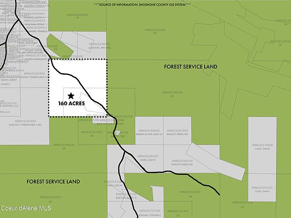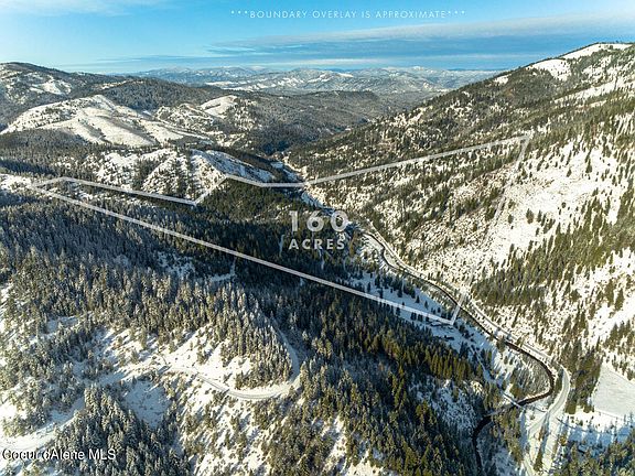 160 ACRES WITH FLAT BUILDING SITES, TIMBER, 3000' OF CREEK FRONTAGE - Backs up to forest service land on (3) sides; (3) separate parcels sold together (100ac, 48.76ac, 11.24ac); see photo markup and video fly-through for amazing elevated building site option; paved public road along Pine Creek winds through the middle of this parcel; large open flat area along creek supports many building options; hillside to the West is timbered with public dirt access road (Trapper Creek Rd); hillside to the East was previously logged, and is currently partially timbered; this property is quiet and secluded, yet only 5 miles to I90!