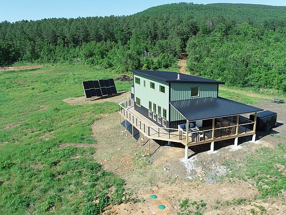 Poteau Mountain Off-Grid Cabin Acreage For Sale Location: This property is located on the West side of the Poteau Mountain Range in Southeast Oklahoma in a very remote and secluded wilderness type setting surrounded by miles of privately owned timberland. The property is about 3.5 miles Northeast of the city of Heavener, OK and 20 miles southwest of the city of Fort Smith, Arkansas. Oklahoma City is about a 4 hr drive and Dallas; Texas is about a 4 hour drive. GPS Coordinates: 34.93014, -94.56311 Physical Address: A physical address can be assigned by the LeFlore County EMS Office. Services to Property: This is off-grid property that operates independently from public utilities. The following off-grid systems are in place and functional: Water Well: There is a functioning drilled water well complete with well pump, pressure tank and sock filtration that provides water to the cabin. The well is 300 feet deep and the well equipment is housed in a winterized building. NOTE: The Sellers report that the water well quality is good andlike spring water. Solar System: Complete solar power system including Canadian Solar 400W Mono-crystalline Solar Panels (CS6R-400MS-HL), totalling 12 panels, featuring ground mounting with adjustable tilt angles. Paired with an EG4 18KPV Hybrid Inverter, capable of 18000W PV input and 12000W output, supporting 48V 120/240V split phase. Complemented by an EG4 PowerPro WallMount AllWeather Lithium Battery, 48V 280Ah, offering 14.3kWh of LiFePO4 energy storage. Septic: The cabin has a conventional septic system. Propane Gas: There is a propane storage tank for the cabin that is used for the hot water heater and kitchen stove. Propane gas can be purchased from the nearby towns. Heating Cooling Systems: Wood burning stove in living room Energy efficient ductless Mini-Split HVAC system Rural Mail Delivery: Rural mail service is available at the county road roughly 1 mile West of the property. Alternatively, a PO box can be assigned at the Heavener Post Office. Access to Property: This property has surveyed legal access by means of a dirt road. The access road is county maintained up to roughly ½ mile from the property. The last ½ mile is a public road but not county maintained. There is a pipe entrance gate. Cabin: There is a newly constructed cabin on the property that has roughly 1040 Ft2 of living space with 2 Bedrooms/1.5 Bathroom. The cabin was designed to be virtually maintenance free with the exterior covered with 26-gauge sheet metal and treated wood decking. The cabin has a pier and beam foundation and 2 x 6 stud walls with extra insulation. There is a wraparound porch that is half covered and half open that provides a good vantage point to take in the awesome mountain and valley views surrounding the cabin. This cabin is well constructed with quality trim work throughout. The walls and ceiling of the cabin are finished out with rustic tongue and groove pine and the flooring is wood coloured vinyl throughout. Energy efficient vinyl double pane windows throughout. All furniture and decorations shown in the pictures will convey to the new owners. Approximate room dimensions are given below: Living Room/Kitchen Area: (19 feet x 19 feet) There are four nice picture windows that provide natural lighting and a great view to the West. Wood burning stove with high radiant heat transfer will easily heat the cabin. Fully functional kitchen with refrigerator, propane stove, microwave, stainless steel sink and butcher block counter tops. There is a nice island with granite counter top for food preparation. A set of stairs lead to the upstairs sleeping loft area. Downstairs Bedroom: (12 feet x 8 feet) There are three large picture windows that offer unbelievable panoramic views of the river valley and surrounding mountain ranges. Nice walk-in closet. Bathroom: (6 feet x 7 feet) Bathroom includes a corner mounted shower, toilet and single vanity/sink. Half Bath: (5 feet x 3 feet) There is a half bath adjacent to the living room area with single vanity/sink and toilet. Upstairs Sleeping Loft: (14 feet x 18 feet) There is a set of stairs off the living room/kitchen area leading to the upstairs sleeping loft that overlooks the living room/kitchen. There is a regular bed and queen size bed. Utility Room: (5 feet x 7 feet) There is a utility closet next to the downstairs bedroom. This room has a washer/dryer connection and houses some of the solar equipment. Covered Porch: (528 Ft2) There is a nice covered porch on the South and East sides of the cabin. This would be a great place to drink coffee in the morning and enjoy the great mountain and valley views. Treated deck boards and metal railing around outside perimeter. Open Deck: (448 Ft2) - Treated deck boards and metal hand railing around outside perimeter. Land: There are 20 acres (m/l) of land surrounding the cabin that is pretty much completely covered with a young stand of timber that is native to Southeastern Oklahoma including a diverse variety of oaks, native shortleaf pine, sumac, elm and eastern red cedar. There is a cleared area surrounding the cabin that would be ideal for raised bed vegetable gardens and fruit trees. The property is located on the West side of Poteau Mountain and offers an unbelievable panoramic view of the river valley and Ouachita Mountain range in the distance to the south. Wildlife are frequently seen on this property and the surrounding area. NOTE: Additional adjoining acreage is available for purchase, if a buyer wants more property. Property Deed Restrictions: This property is unrestricted with no deed restrictions. Agents Comments: Beautiful wooded and wilderness type property in a private and secluded location surrounded by miles of privately owned timberlands. Excellent recreational property with a diverse variety of terrain and some unique features including rock outcroppings and panoramic mountain and valley views. Excellent hunting for deer, squirrel, turkey, wild hogs, rabbit, quai