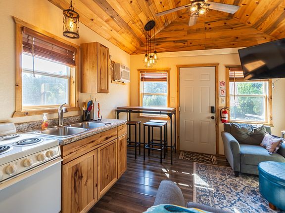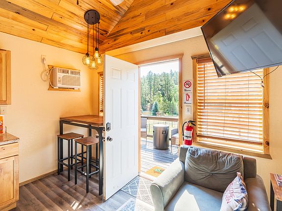 Looking for a cozy getaway cabin? This adorable, fully furnished cabin is currently being used as a successful vacation rental and is perfect for those seeking a relaxing retreat. The cabin does not come with real estate and must be relocated, with moving costs currently being assessed. It features a spacious deck complete with patio furniture and a gas firepit, making it an ideal spot to unwind and enjoy the outdoors. Inside, you'll find a comfortable living space with a full-size sofa sleeper on the lower level, a wall AC unit, and cove heating for year-round comfort. The kitchenette provides all the essentials for preparing meals, while the full bathroom ensures convenience. Upstairs, a cozy loft bedroom awaits with a queen-size bed for a peaceful night’s sleep. Don’t miss out on the chance to own this charming cabin—perfect for your next adventure or future vacation rental opportunity! This cabin cleared $30,000 in income in 2025 if you are looking for a rental. Come take a look!