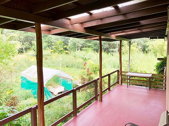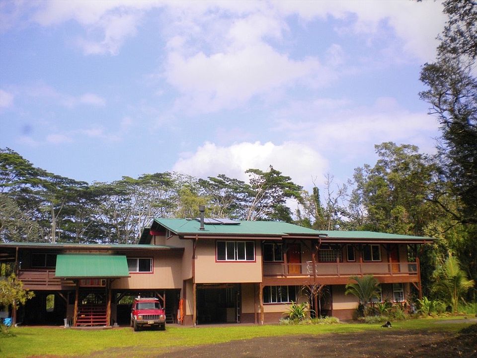 This is a must see for someone looking for their dream, custom off-grid home in Paradise on abundant acreage with privacy! A beautiful and scenic drive brings you to this 10 acre property that is quiet, secluded and peaceful. As you enter this gated property, you will be greeted by a long winding driveway shaded by an incredible grove of exotic timber trees, timber bamboo stands and over 50 producing fruit trees! This well constructed, newer home consists of approx 3,000 sqft of living area with 1,000 sqft of covered lanai space, a 2 car carport with shop space, a separate shed for the solar-system and farm tools and so much more! This 5 bedroom/3.5 bath home is built with quality material and careful attention to detail. The upstairs is very spacious, has an open feel with over sized rooms that make it easy to move around in. It's the main section of the home that includes the kitchen, living room with wood burning fireplace, 3 bedrooms and 2 bathrooms with several covered lanai areas. The downstairs has a separate suite with it's own entrance, bathroom, kitchen, and 2 bedrooms. The downstairs also has the carport, shop and outdoor bonus bathroom with an antique claw foot tub. This well thought out property was the dream of brilliant minds who thoughtfully and carefully planted the best fruit trees for this climate, and constructed and finished this home using high quality materials and details from start to finish. Enjoy the luxury feel of the grand vaulted ceilings, large vinyl windows, carefully finished wood trim, the dreamy tile work in the bathrooms, the built in furniture and cabinets and so much more! The list of Fruit trees is extensive and includes: Tangelo,Tahitian Lime,grapefruit, oranges, cacao, Breadfruit, Jackfruit, Lychee, Rollinia, Sour sop, Jaboticaba, mtn Apple, Avocados, Bananas, coconuts, mulberry, kukui nut. There are groves of timber trees and mature stands of timber bamboo too! Ask for a list..