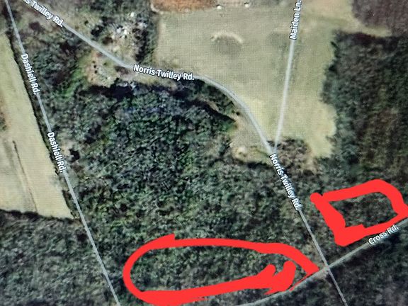 This property is totally wooded and great for hunting turkey & deer. The property is located on Both sides of the road crossing over Norris Twilley the 10 + acres is on the side that starts at the corner of Dash and Cross and runs to Norris Twilley crosses over the road and the remaining 4 ish Acres is on that side.