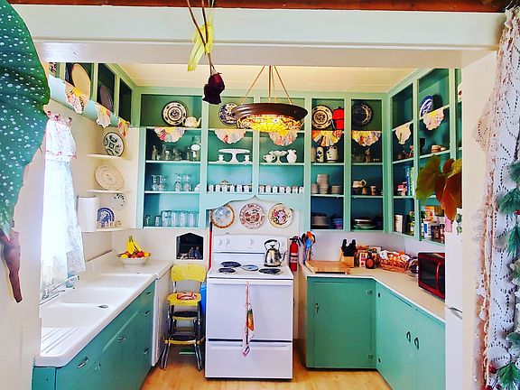 Check out the vintage kitchen with well-supplied, modern amenities: with just about everything one needs. Delightful touches such as the double drainboard cast iron sink, open shelving, and no fewer than four different ways to make a hot cuppa Joe (French Press, percolator, drip, and of course coffee maker...or there is a charming coffee shop within walking distance!) compliment the uniqueness that is the Sparrow's Nest.